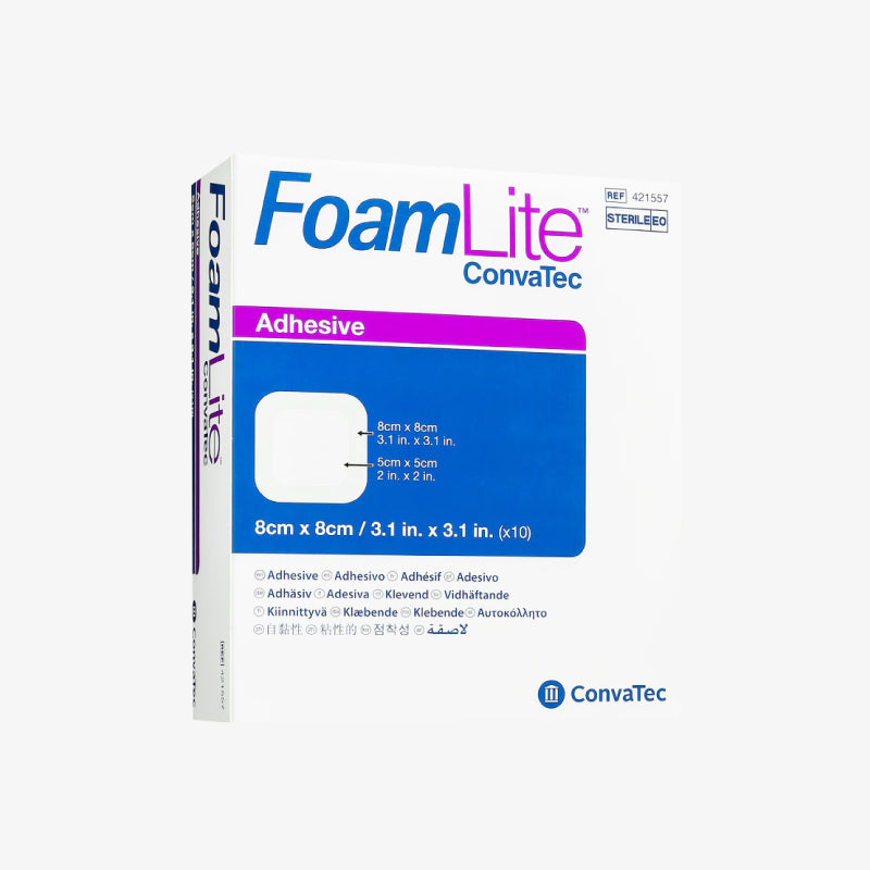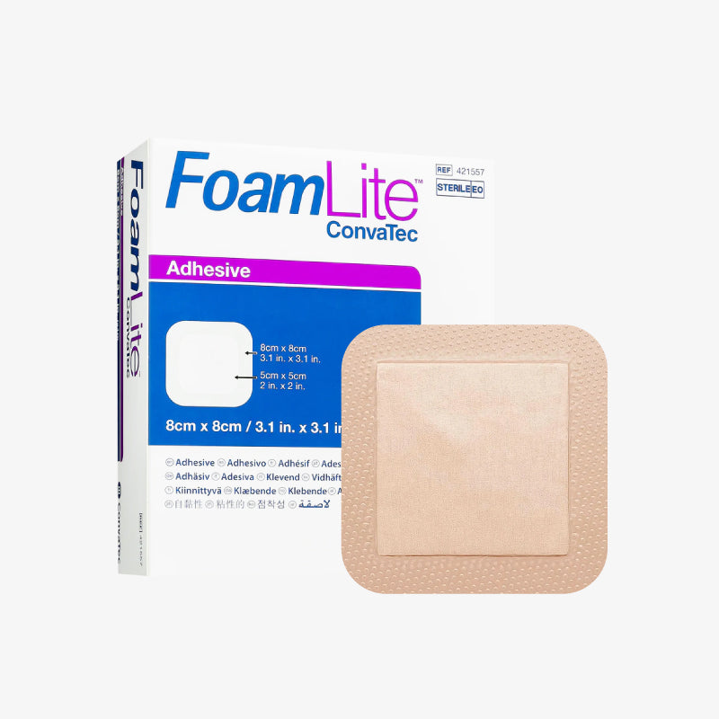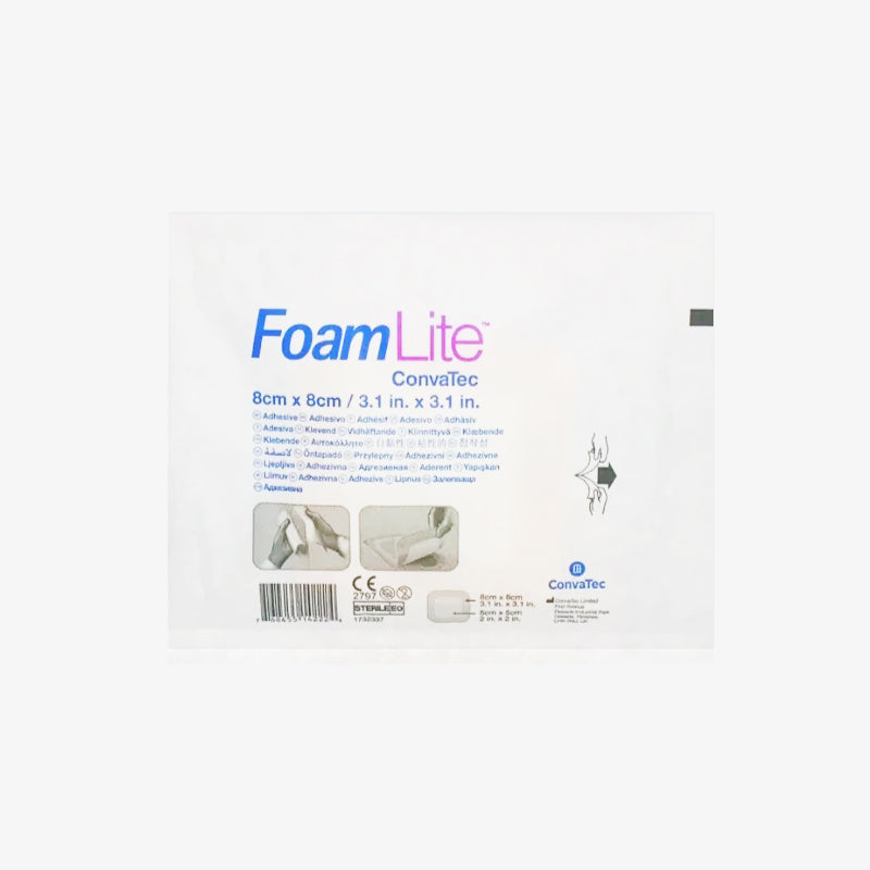 El apósito FoamLite ConvaTec es un apósito de espuma delgado con una película transpirable y un adhesivo de silicona perforado, suave y respetuoso con la piel.