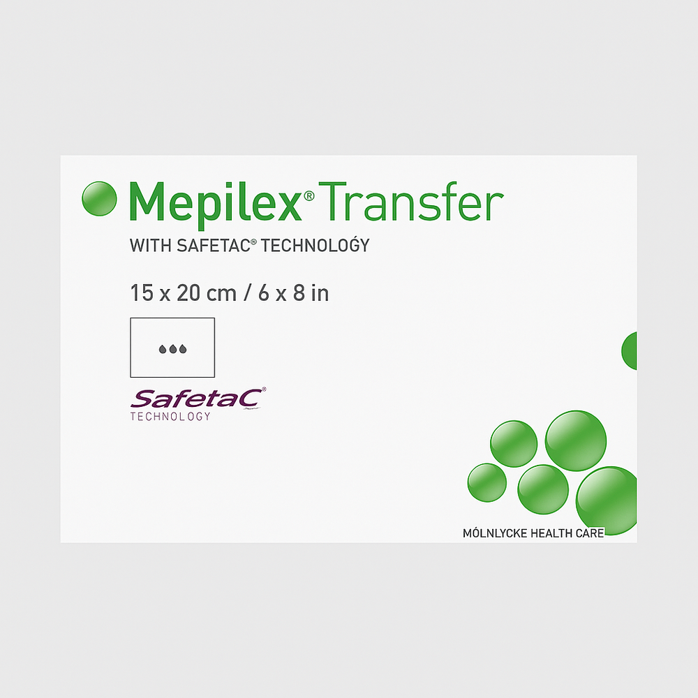 Mepilex ® Transfer es un apósito de transferencia de exudado de silicona suave diseñado para una amplia gama de heridas exudativas. También se puede utilizar como protección de pieles comprometidas o frágiles.