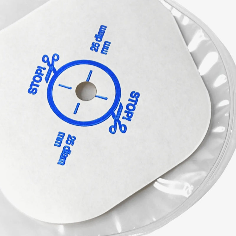 La bolsa está cubierta en su parte posterior por un panel poroso plástico que absorbe la humedad y aísla la piel del paciente evitando así irritaciones. Mantiene la piel seca y protegida.