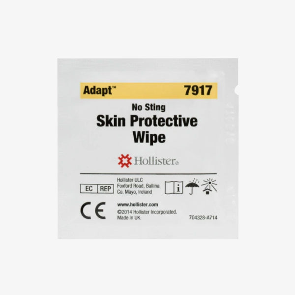 Toallitas Dermoprotectoras Hollister Adapt Crea una barrera transpirable para proteger la piel vulnerable de los efectos dañinos de los desechos del cuerpo, fricción y adhesivos médicos.