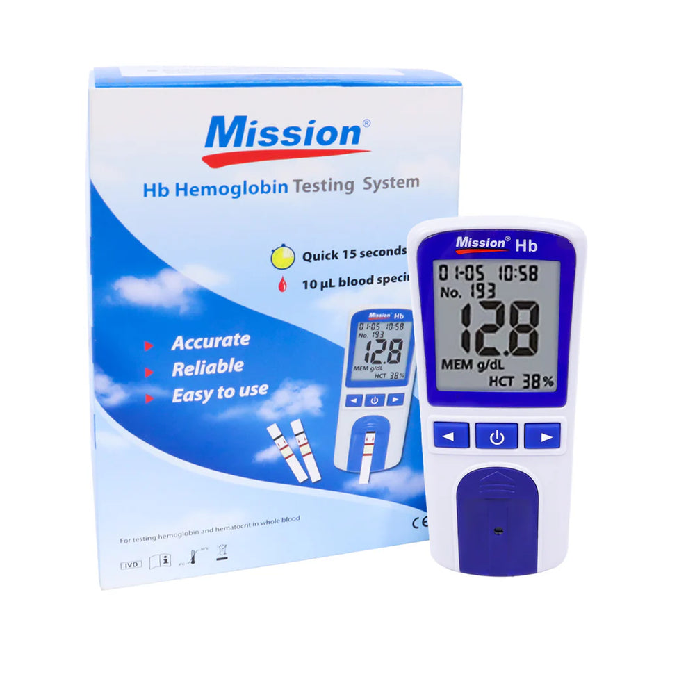 El Kit de Diagnóstico de Hemoglobina Mission HB Acon es un dispositivo de autodiagnóstico que permite medir los niveles de hemoglobina en la sangre de forma rápida y sencilla.
